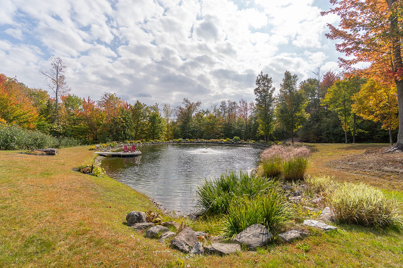 Sise sur un vaste terrain boisé sur lequel un lac artificiel a été aménagé, cette sublime propriété vous charmera!