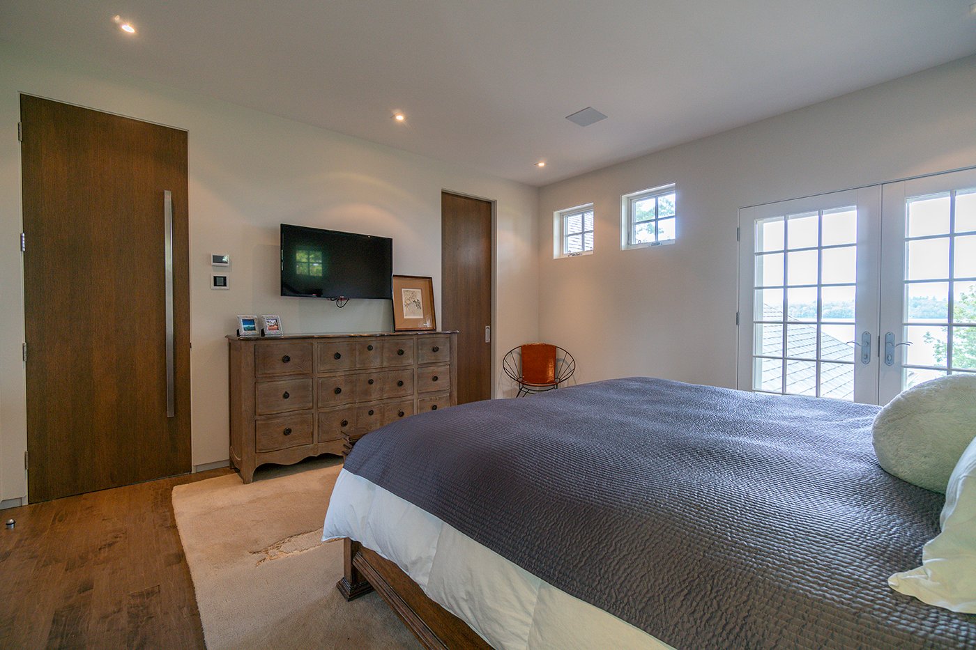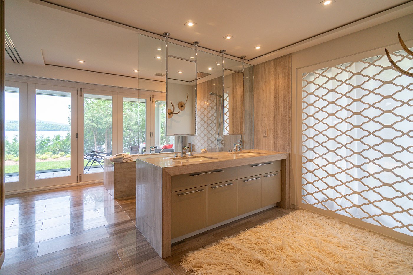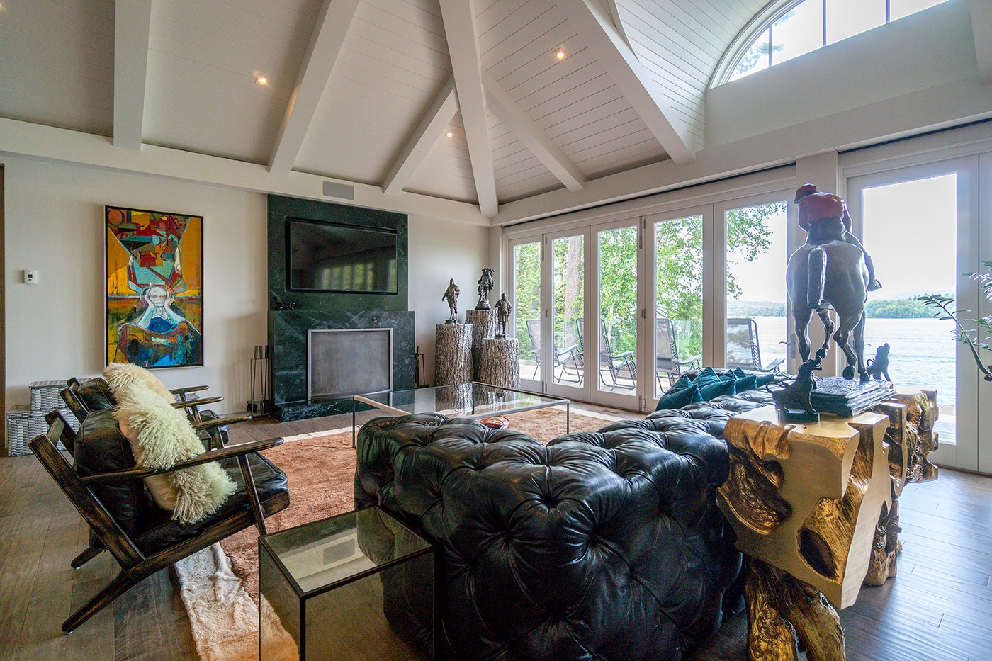Offrant une vue imprenable sur le lac grâce à l'abondante fenestration caractérisant l'aire commune, le salon et la salle à manger sont à aire ouverte.