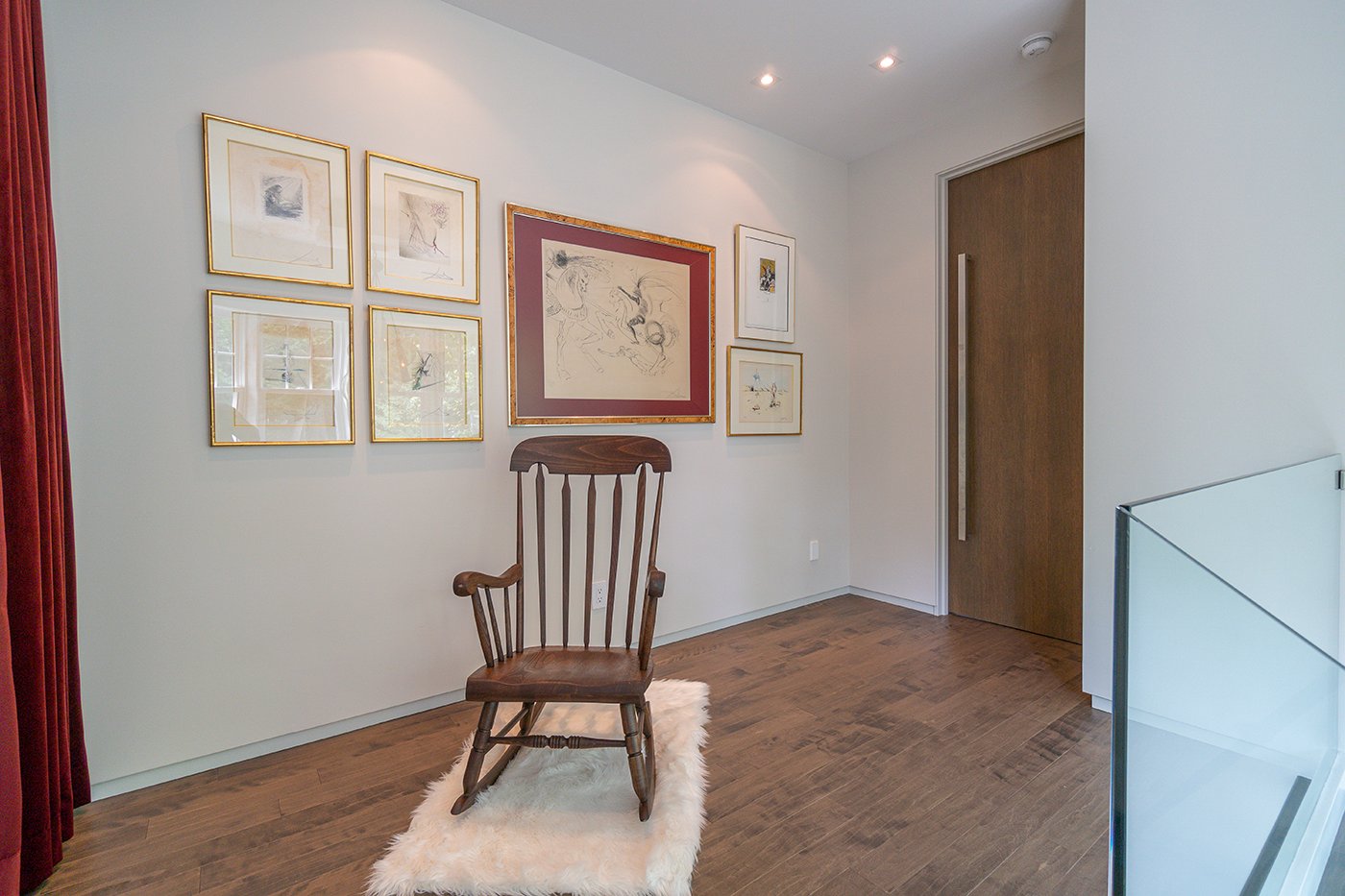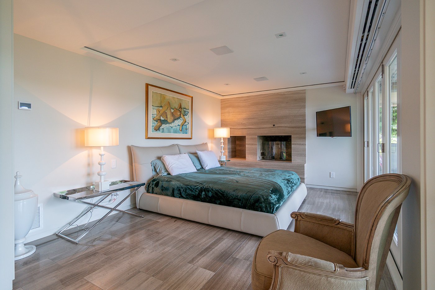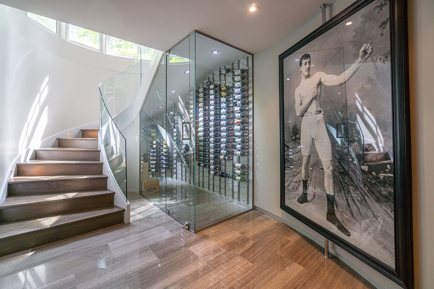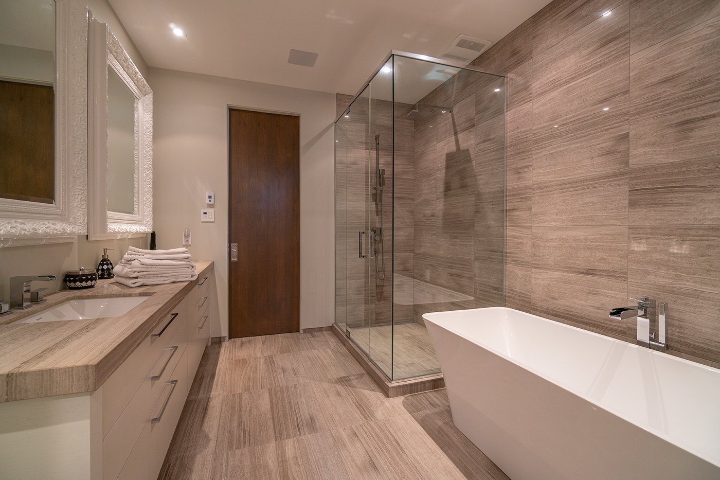 Au sous-sol, on retrouve une salle familiale confortable, une salle de cinéma et une seconde suite avec salle de bains ouverte, regroupant bain à podium de marbre et vanité double, avec accès direct à la cour arrière.