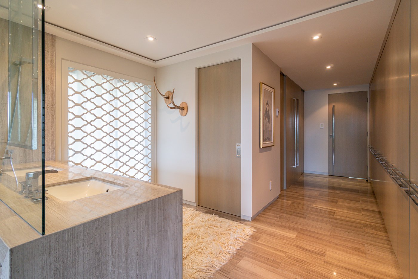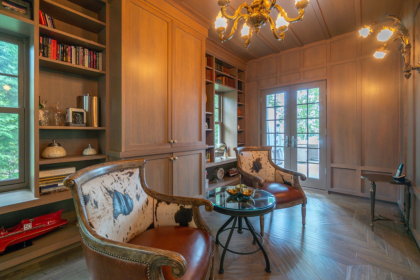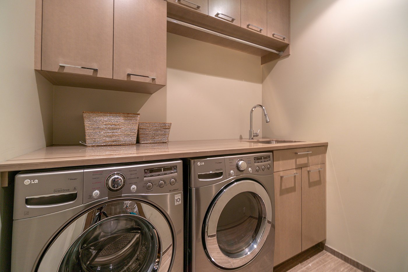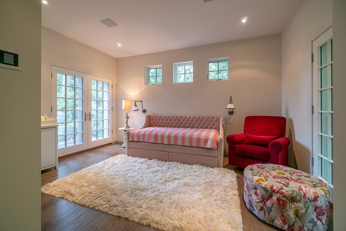 Au sous-sol, on retrouve une salle familiale confortable, une salle de cinéma et une seconde suite avec salle de bains ouverte, regroupant bain à podium de marbre et vanité double, avec accès direct à la cour arrière.