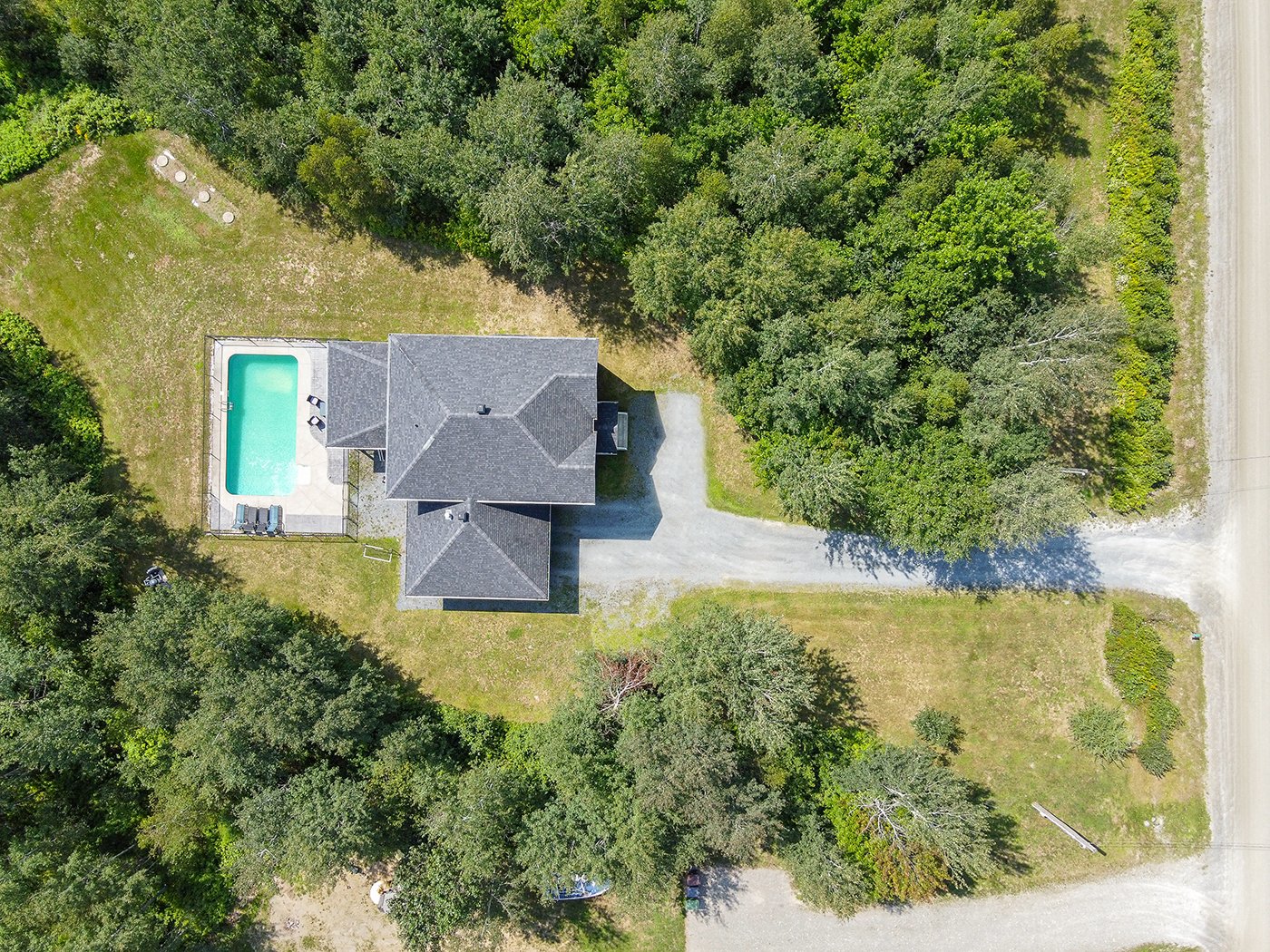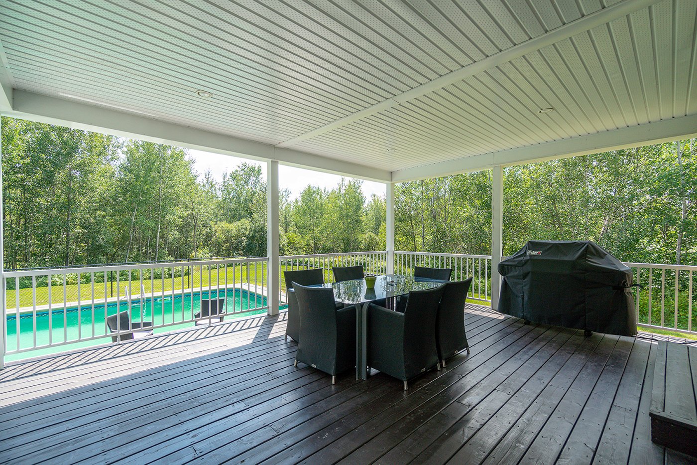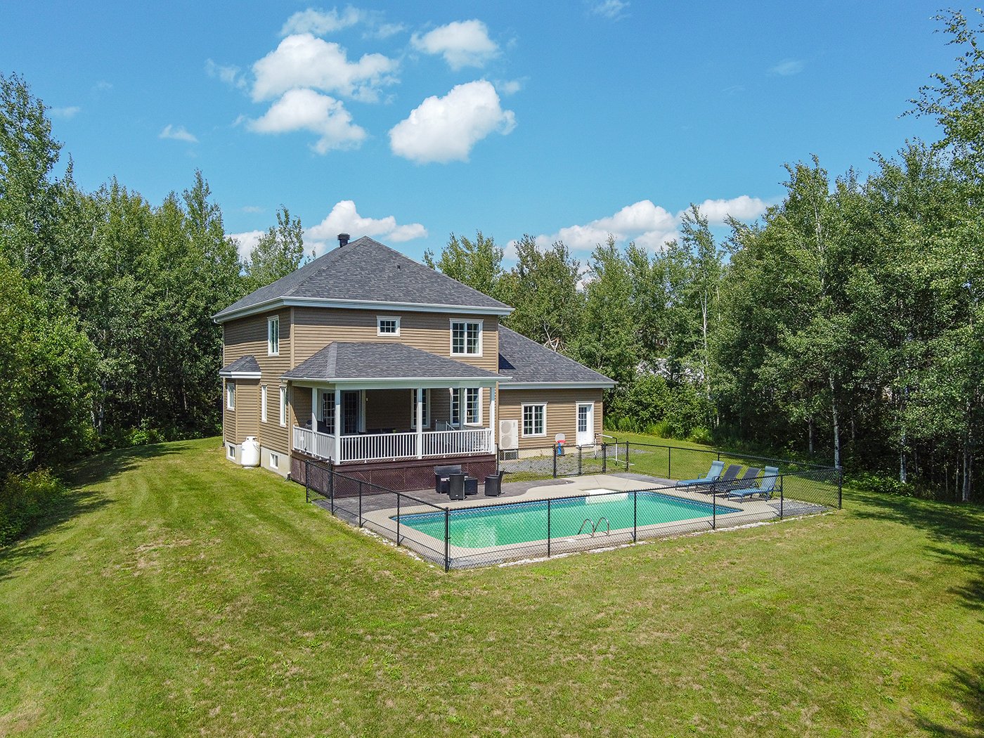 Le grand terrain boisé et sans voisin à l'arrière vous permettra de profiter pleinement de la piscine creusée, au sel et de l'immense patio, tout au long de l'été! Actuellement, le terrain n'est qu'utilisé qu'au 2/3, ce qui vous laisse plusieurs possibilités de projets.