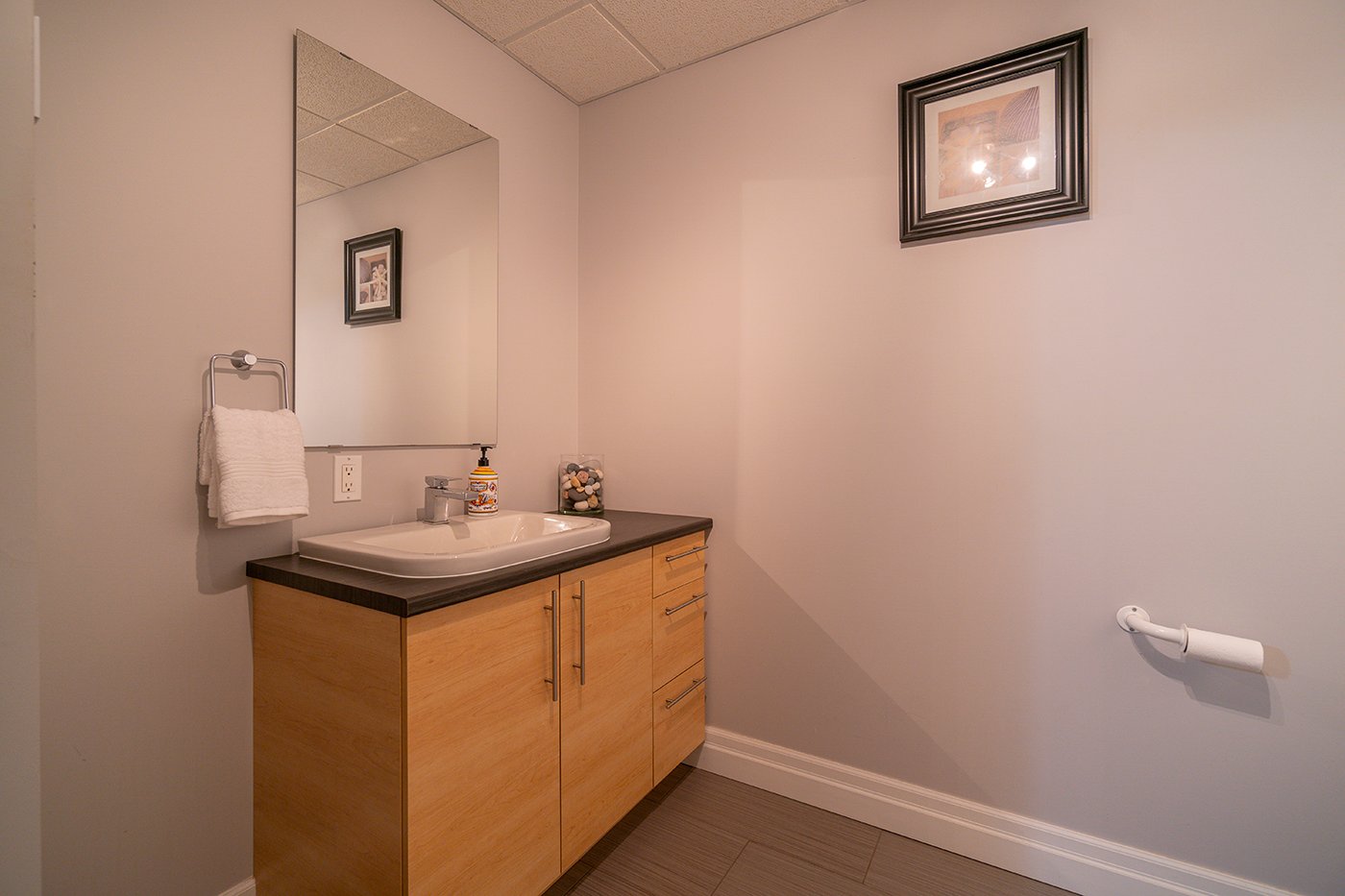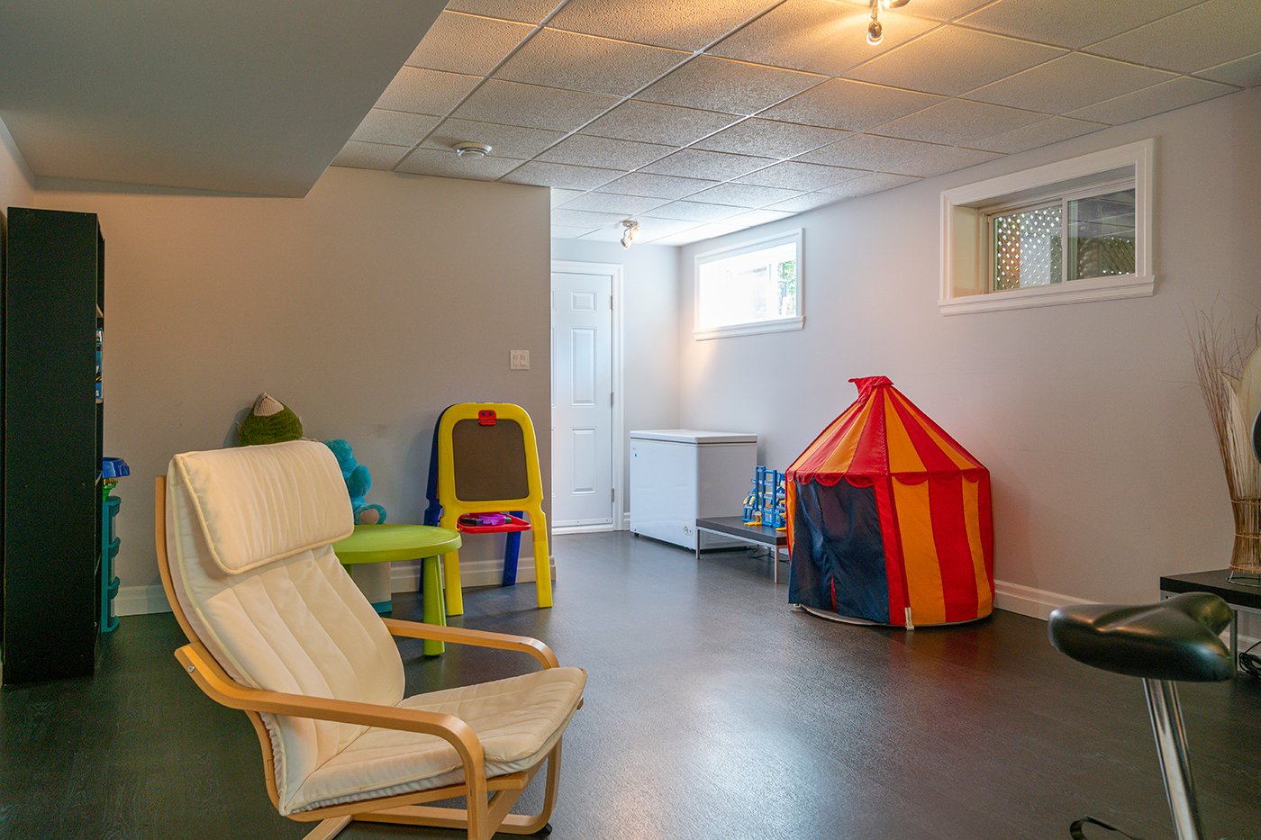 Une vaste salle familiale a été aménagée au sous-sol.