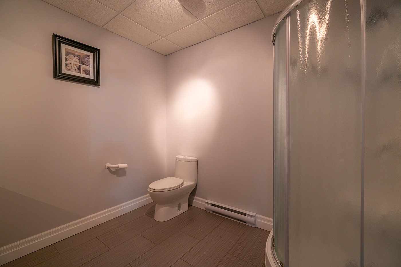 La salle de bains commune de l'étage est dotée d'un bain-douche de céramique.