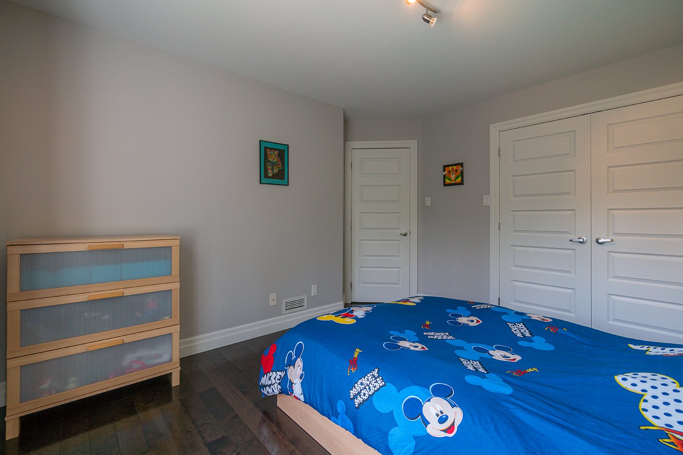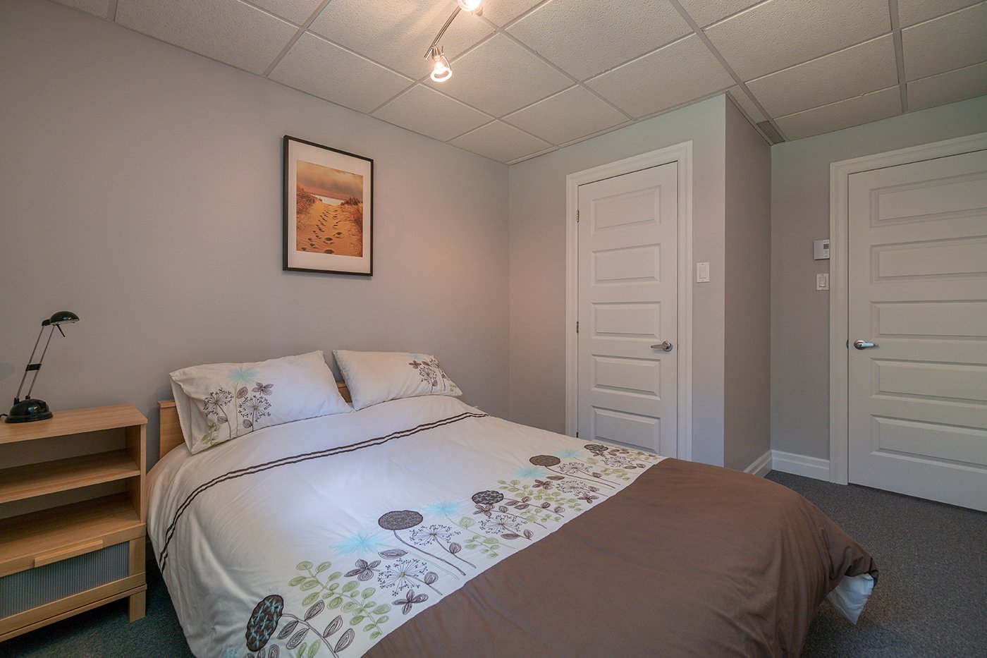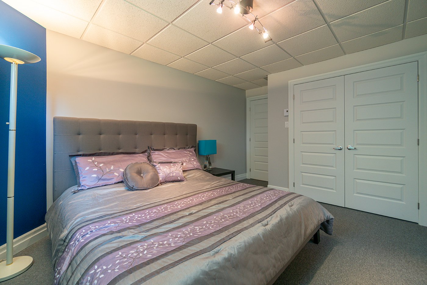 L'une des chambres du sous-sol compte une garde-robe walk-in.