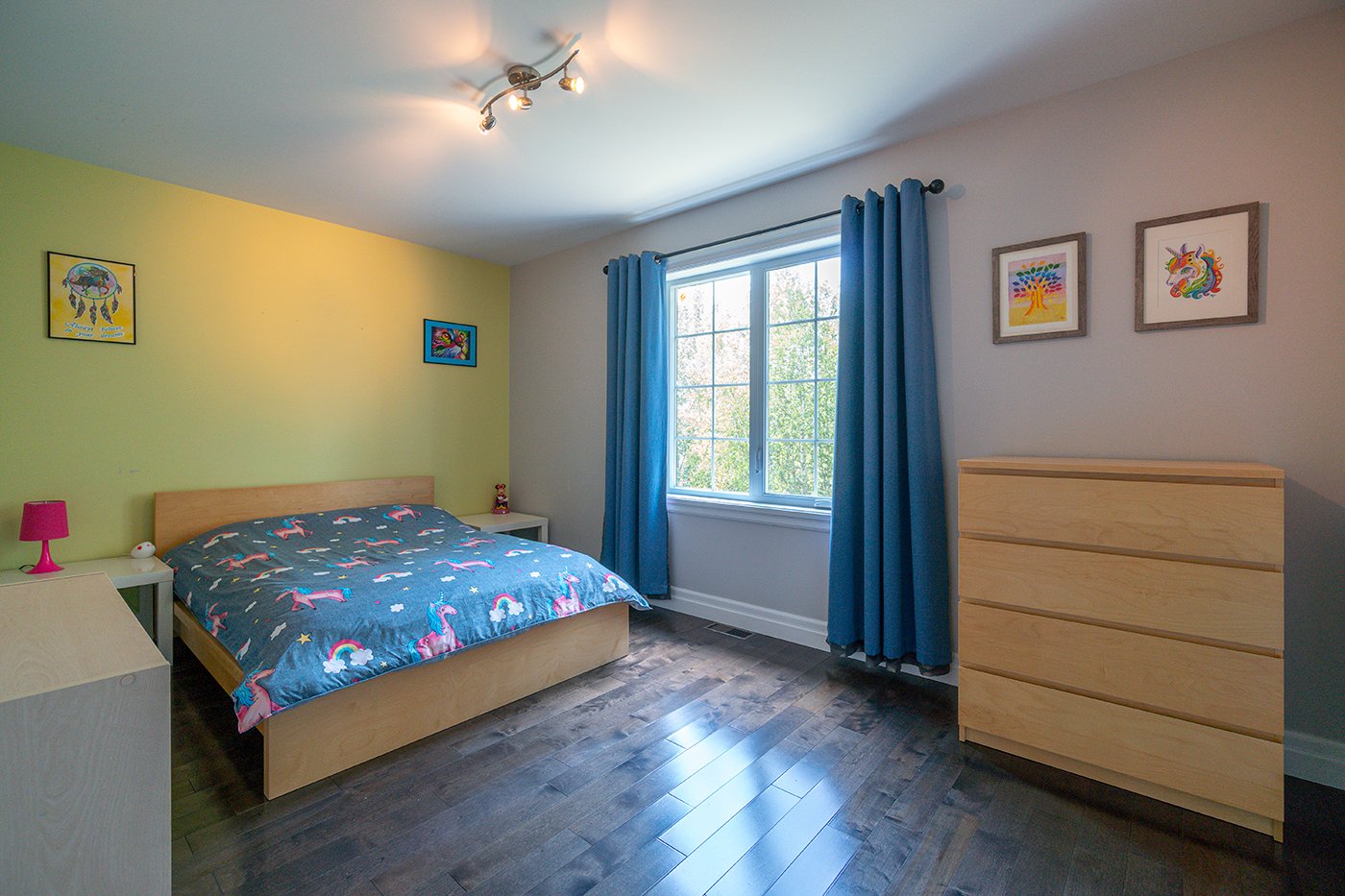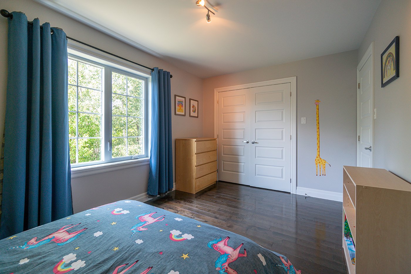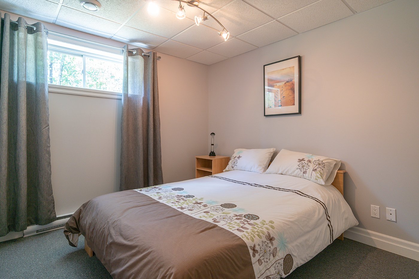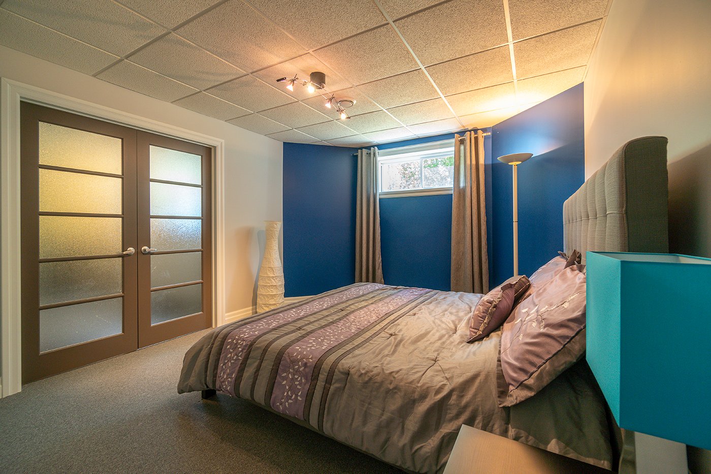 L'une des chambres du sous-sol compte une garde-robe walk-in.