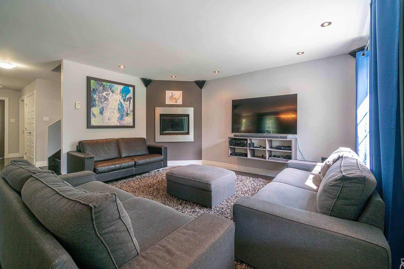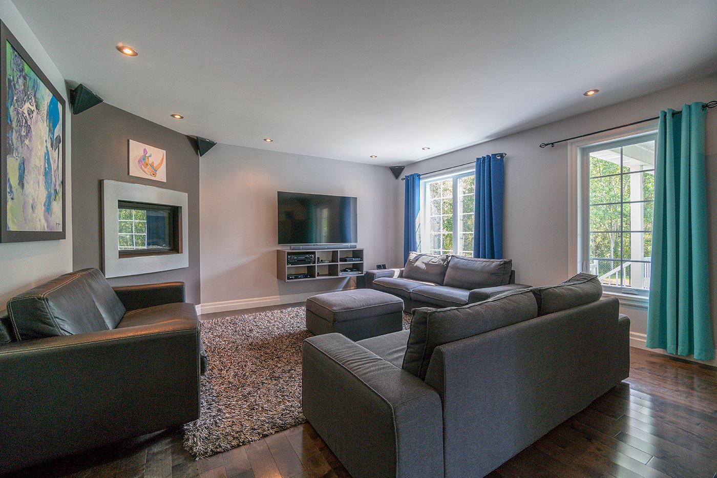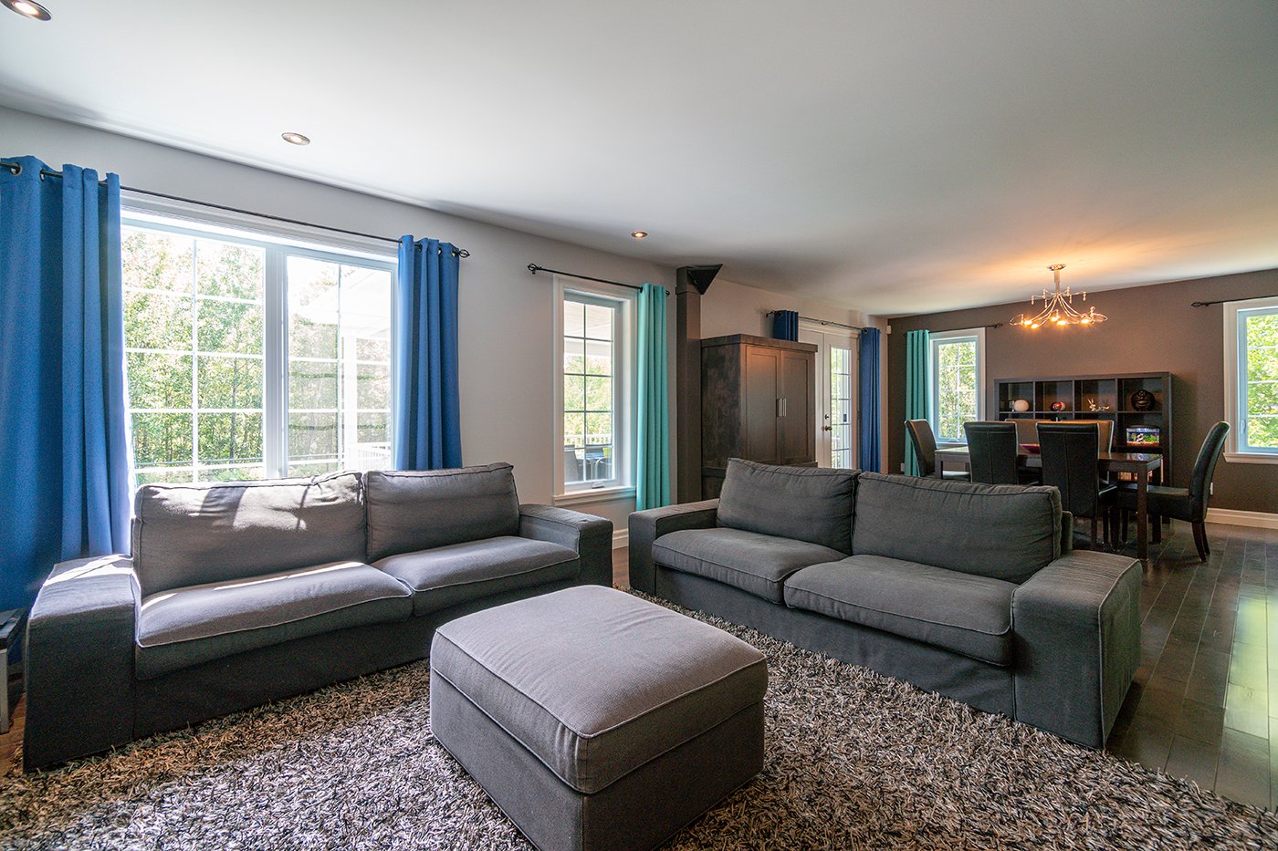 Le vaste salon bénéficie d'une abondance de luminosité naturelle et accueille un foyer au gaz pour réchauffer vos soirées.