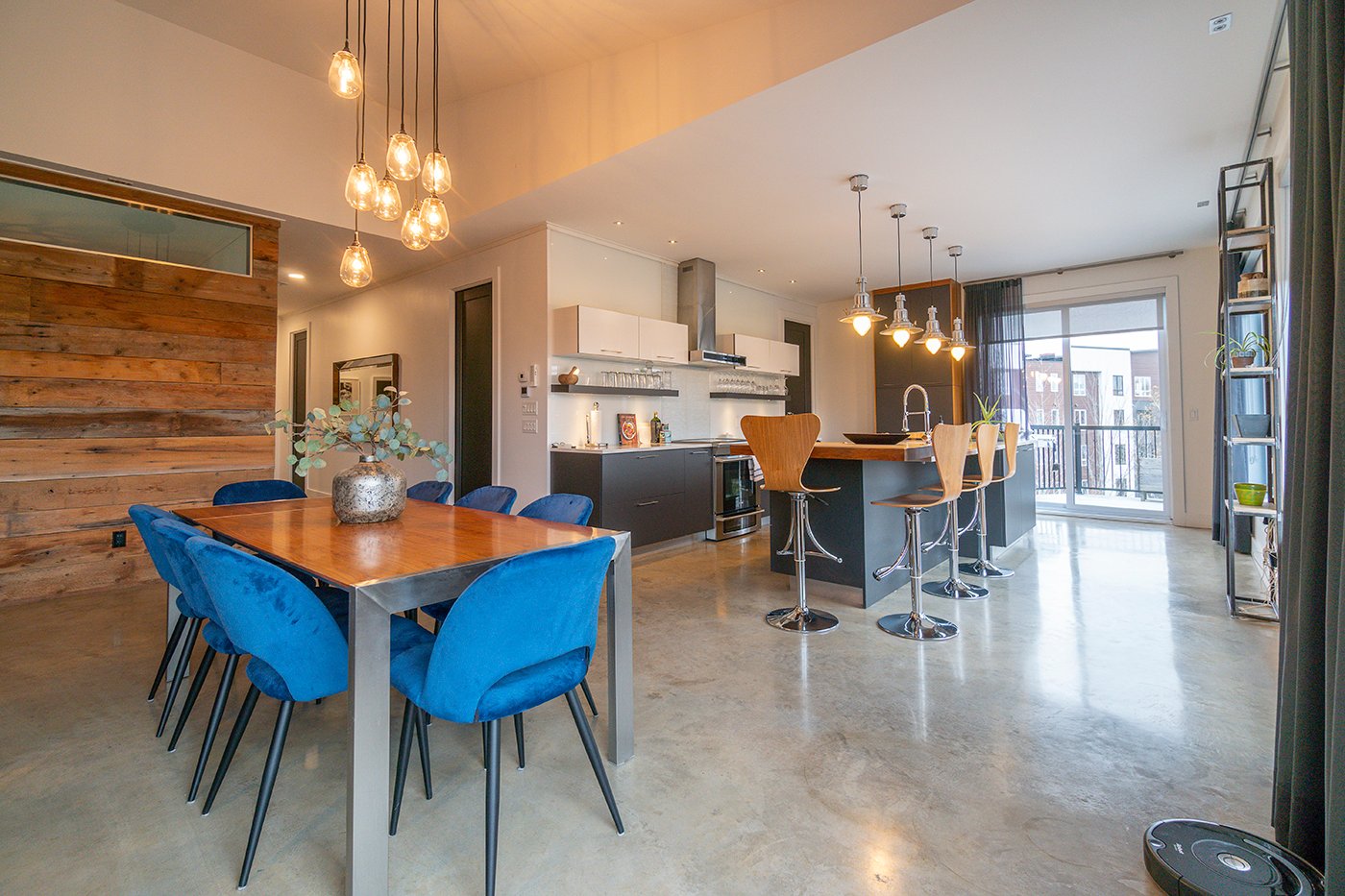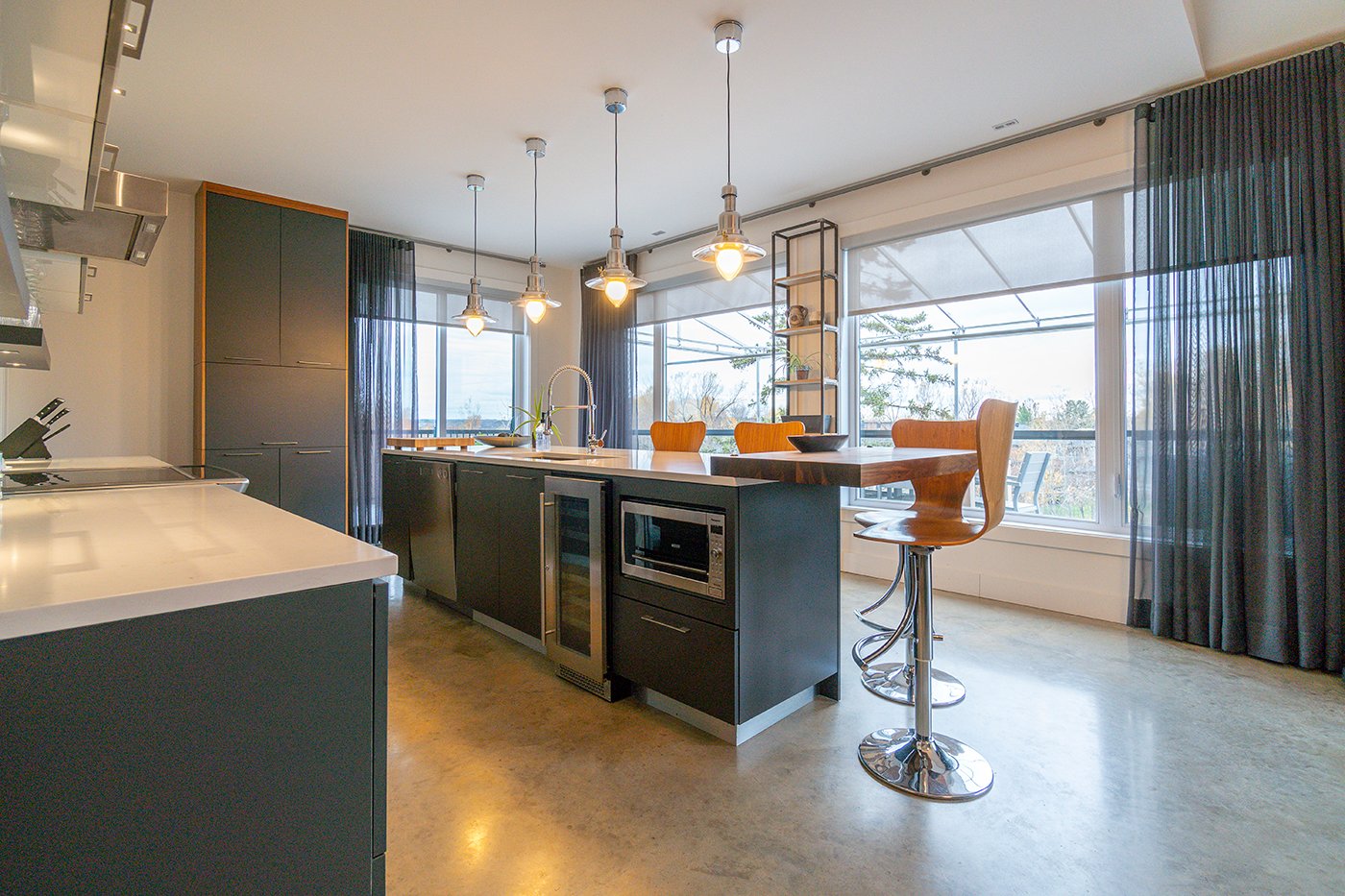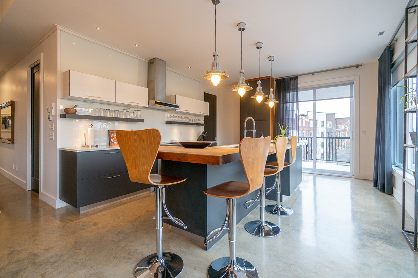 Combinant style industriel et bois naturel dans un savant mélange actuel et urbain, ce condo haut de gamme est un coup de coeur assuré! Plafond de 9 pi, plancher de béton chauffant, fenestration omniprésente, foyer au gaz au salon. S. bains attenante et walk-in dans la chambre. Immense terrasse sur 2 façades. Garage intégré, piscine commune.
