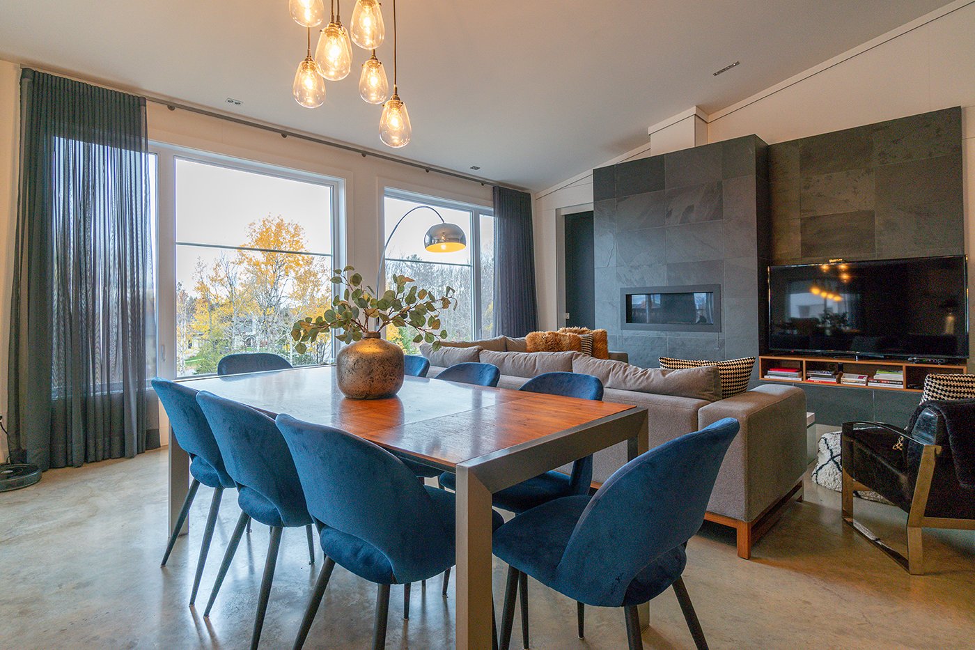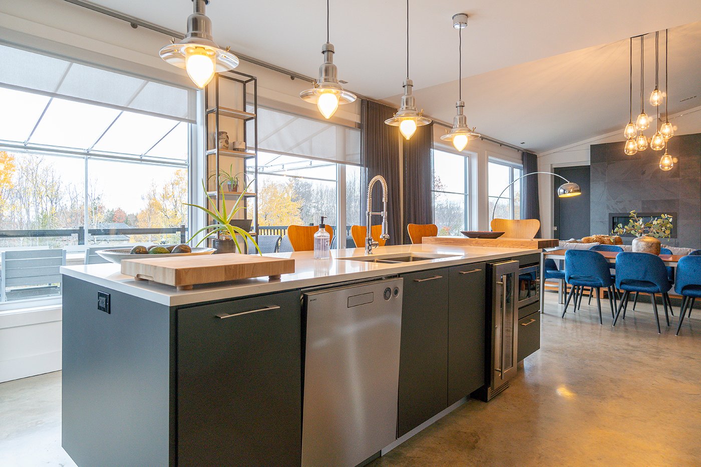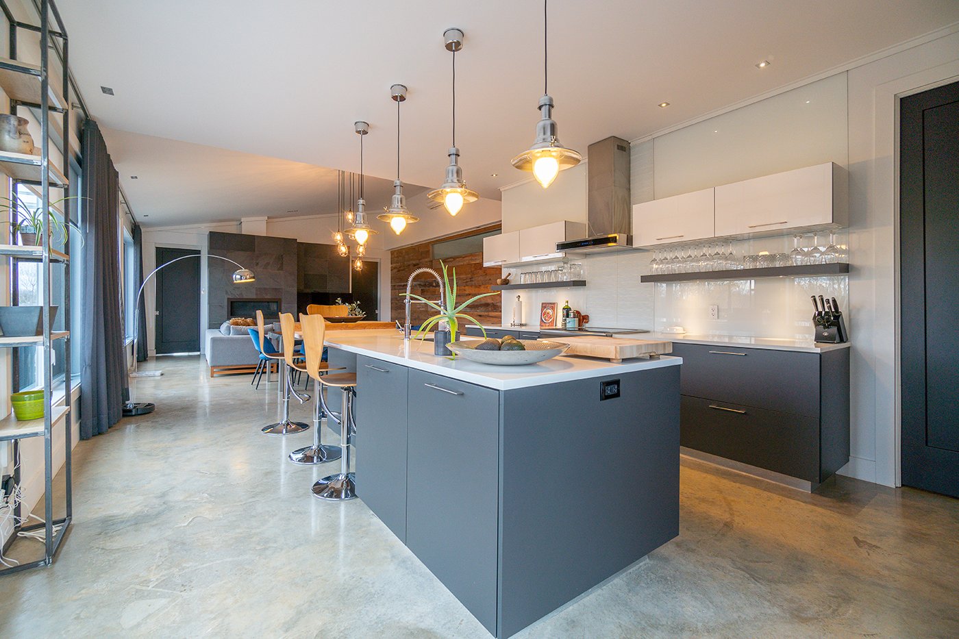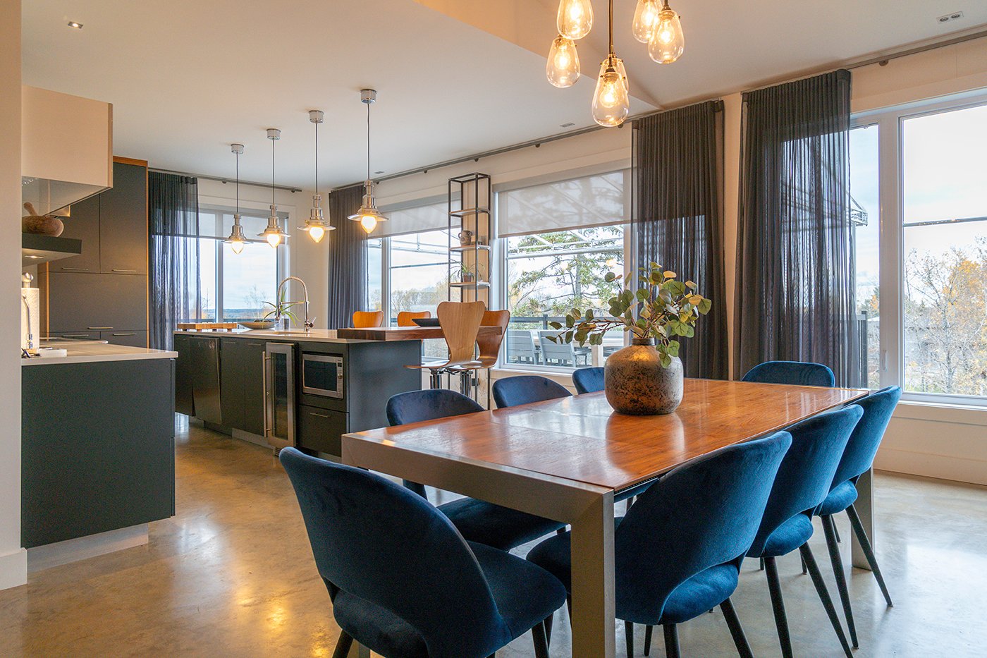Combinant style industriel et bois naturel dans un savant mélange actuel et urbain, ce condo haut de gamme est un coup de coeur assuré! Plafond de 9 pi, plancher de béton chauffant, fenestration omniprésente, foyer au gaz au salon. S. bains attenante et walk-in dans la chambre. Immense terrasse sur 2 façades. Garage intégré, piscine commune.